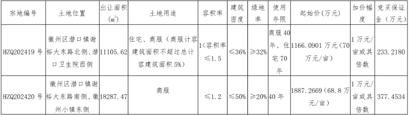 二、竞买人资格及条件:1、HZQ202420号地块中华人民共和国境内外的法人和其他组织均可申请参加,不接受自然人申请及联合申请;2、HZQ202420号与HZQ202419号地块以搭配方式出让,即土地竞买人须同时申请竞买上述两宗土地,同时报价、同时竞得,不单独接受上述任意一宗土地的竞买申请。3、项目房屋达到交房条件后,黄山市自然资源和规划局徽州分局可提供“交房即办证”服务,土地竞得人可实现“交房即办证”。