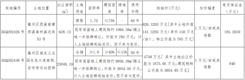经黄山市徽州区人民政府批准,黄山市自然资源和规划局徽州分局委托黄山市公共资源交易中心以挂牌方式出让以下2(幅)地块的国有建设用地使用权。现将有关事项公告如下: