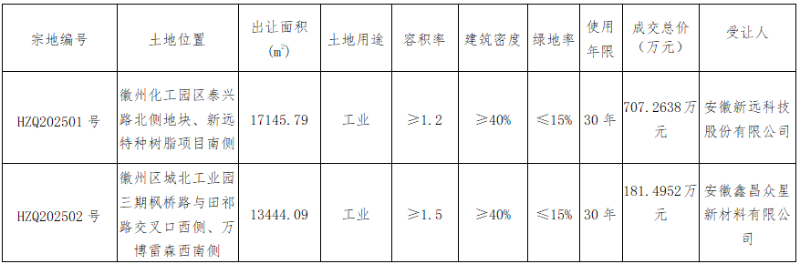 徽州区国有建设用地使用权挂牌成交结果公示(HJAGT2025P012)【市本级】