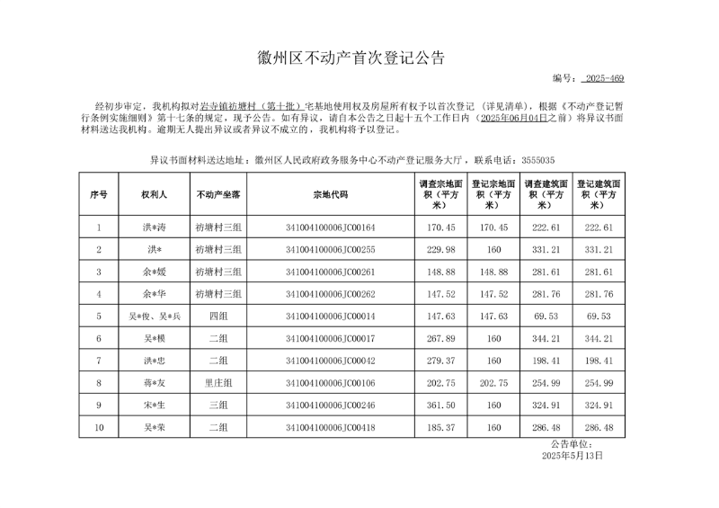 岩寺镇祊塘村(第十批)宅基地使用权及房屋所有权首次登记事项公示