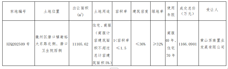 徽州区国有建设用地使用权挂牌成交结果公示(HJAGT2025P041)【市本级】