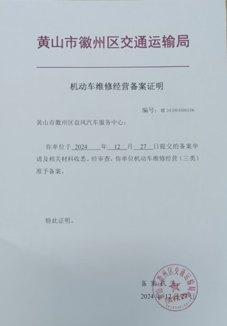 机动车维修经营备案