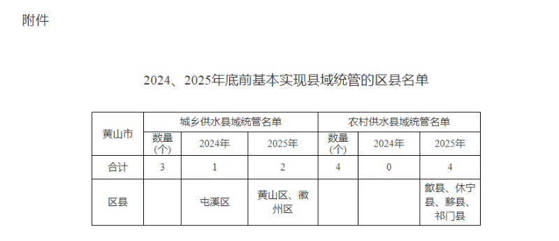【上级部门文件】关于印发《黄山市关于落实全面推进农村供水县域统管的指导意见》的通知