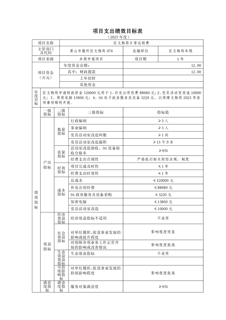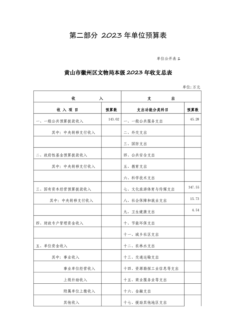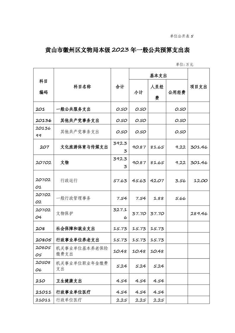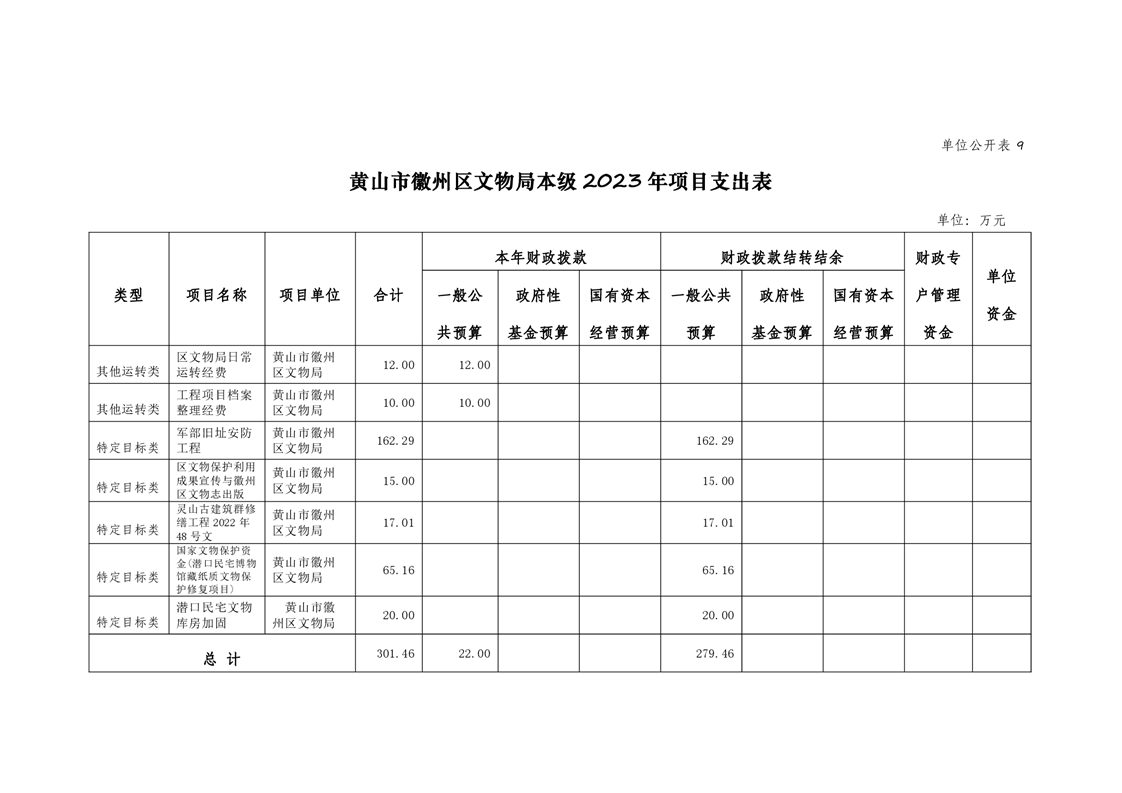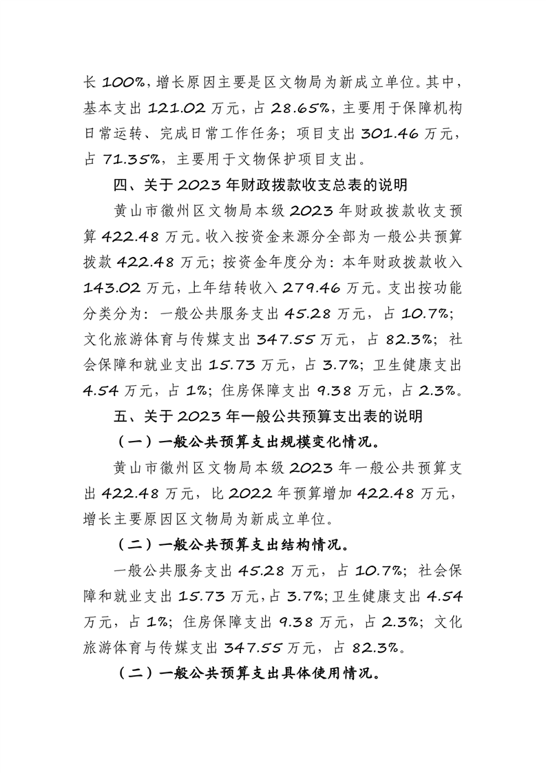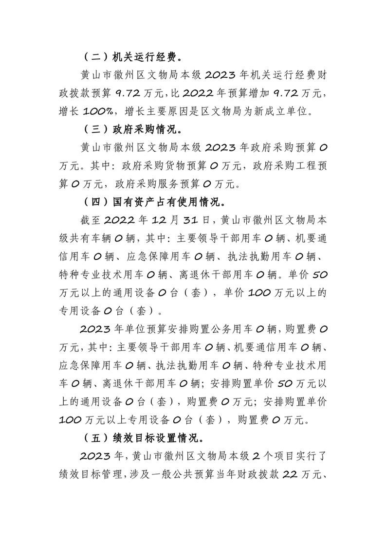 黄山市徽州区文物局2023年单位预算