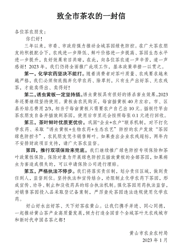 致全市茶农的一封信