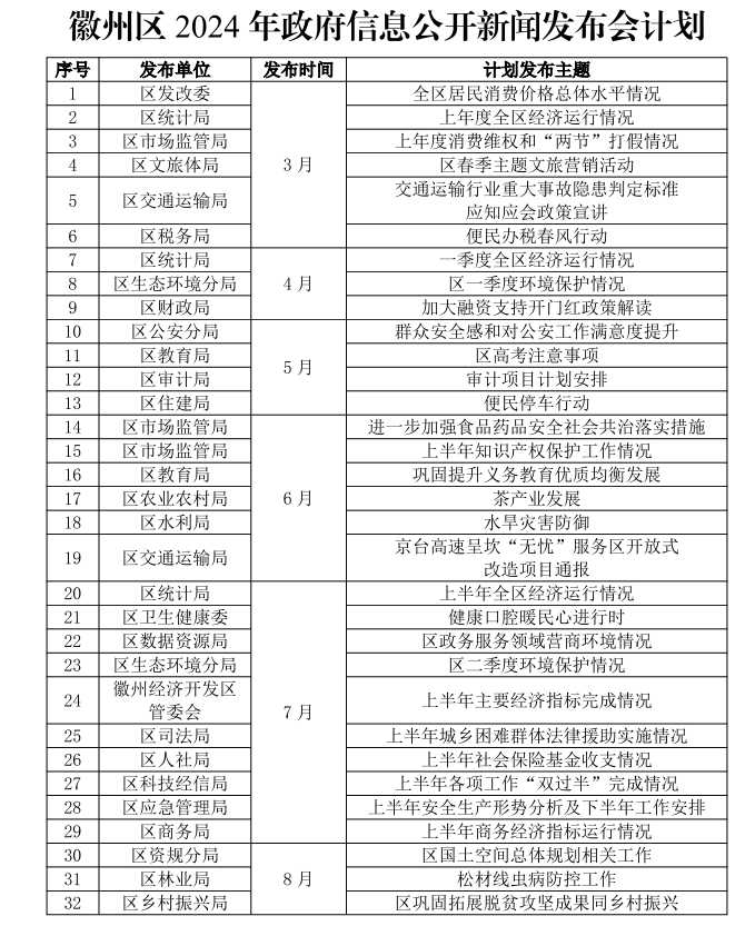附件:徽州区2024年政务公开新闻发布会计划
