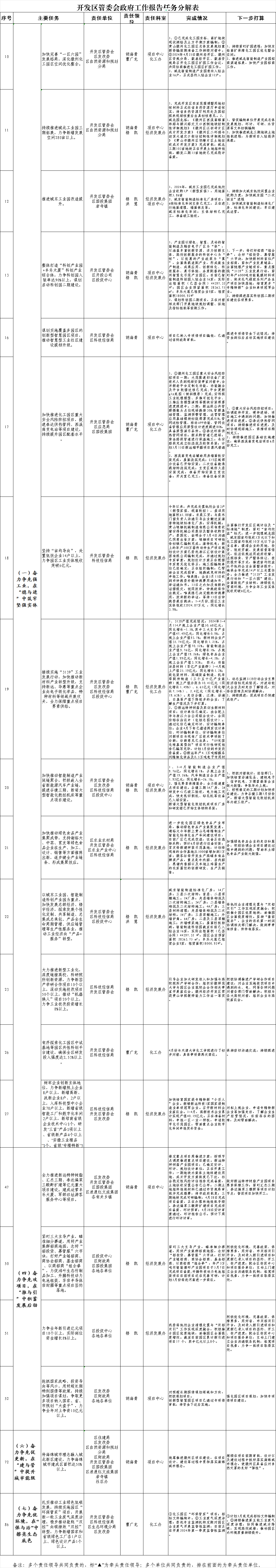开发区管委会2024年《政府工作报告》任务分解表完成情况(4月份)