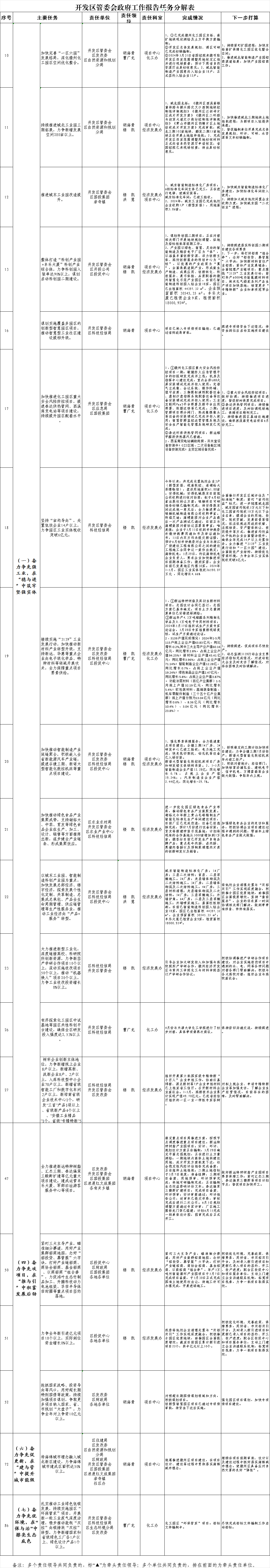 开发区管委会2024年《政府工作报告》任务分解表完成情况(5月份)