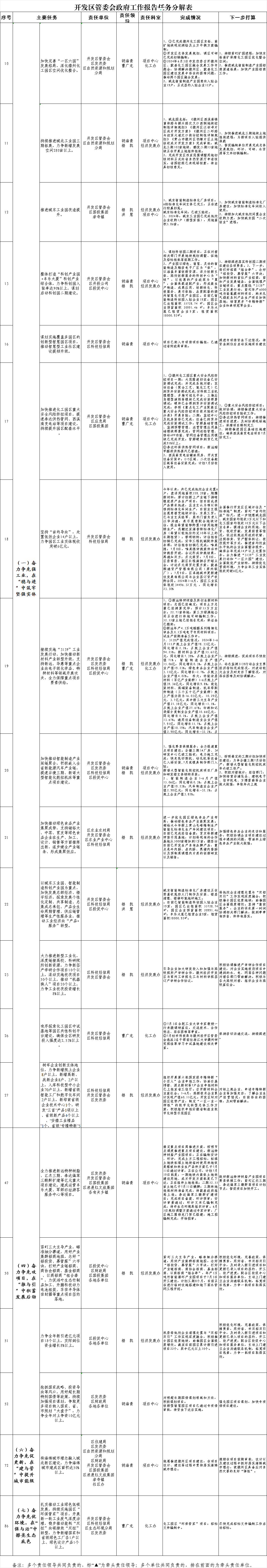 开发区管委会2024年《政府工作报告》任务分解表完成情况(6月份)