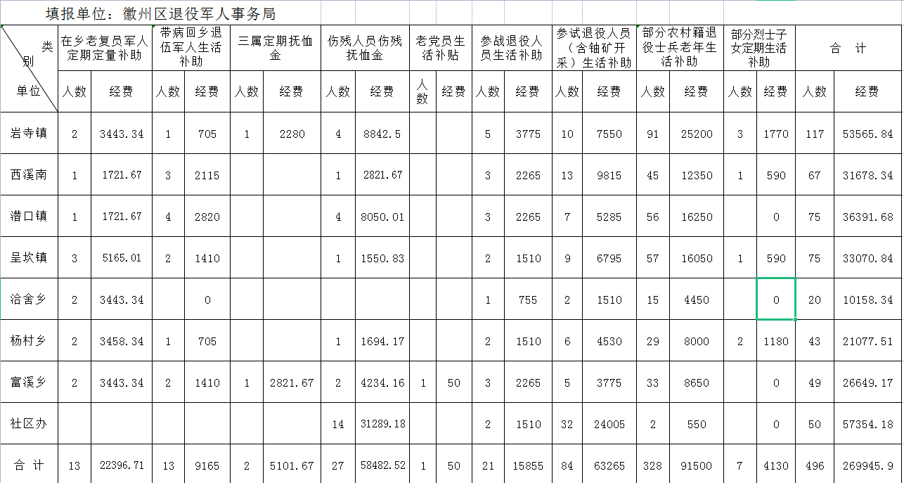 本月岩寺镇农村籍退役士兵程*友去世,减发老年生活补助350元,西溪南镇农村籍退役士兵方*德去世,减发老年生活补助300元。潜口镇农村籍退役士兵刘*煌已享受职工养老保险待遇,停发优抚生活补助,减发300元,呈坎镇农村籍退役士兵蒋*宝已享受职工养老保险待遇,停发优抚生活补助,减发250元。