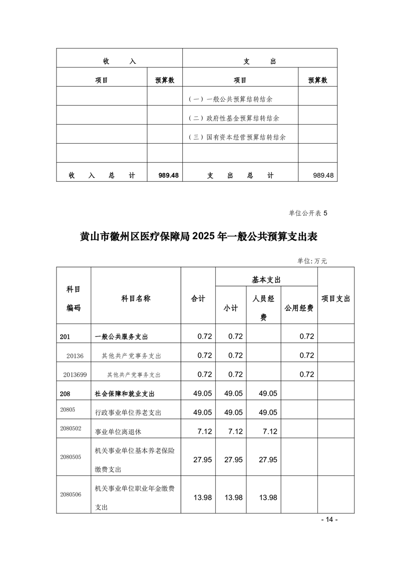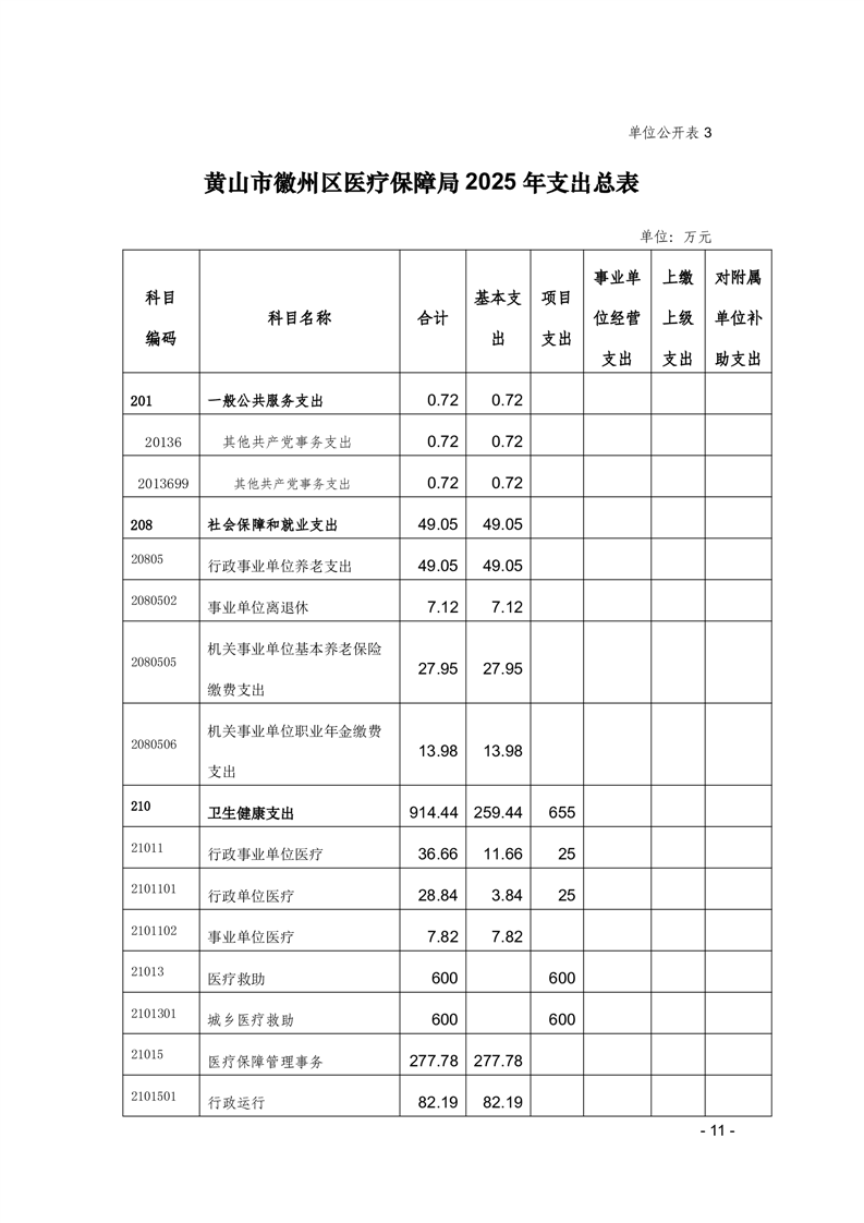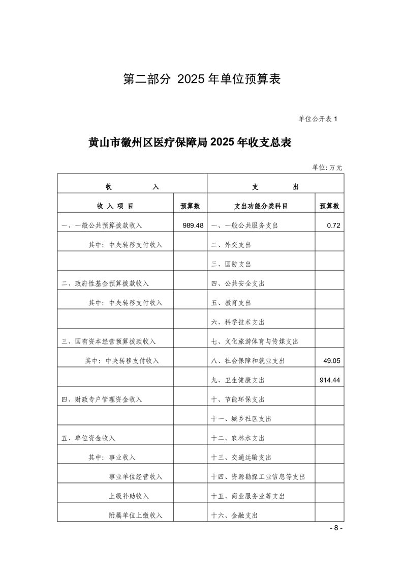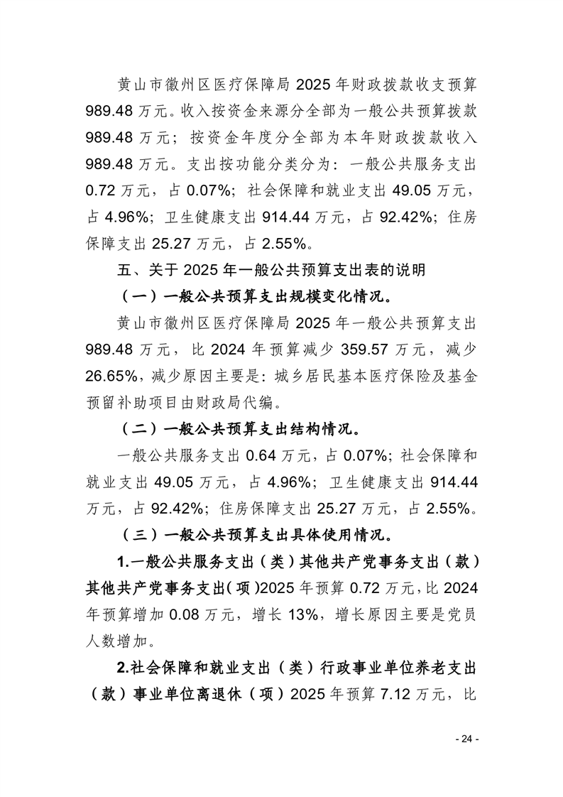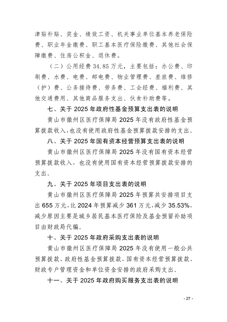 黄山市徽州区医疗保障局2025年单位预算