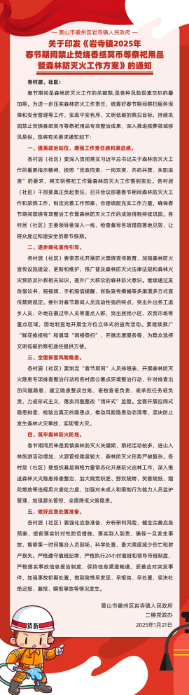 【图片解读】 关于印发《岩寺镇2025年春节期间禁止焚烧香纸冥币等祭祀用品暨森林防灭火工作方案》的通知