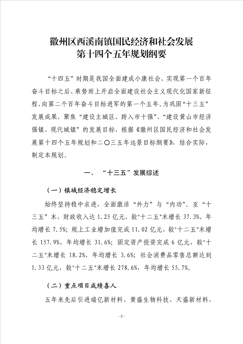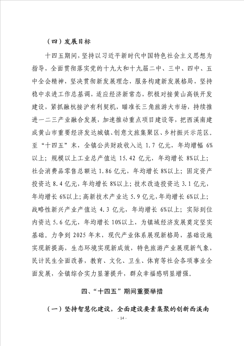 徽州区西溪南镇国民经济和社会发展第十四个五年规划纲要