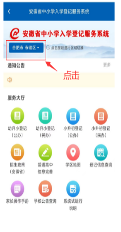 登录网址(https://ahrx.ahjygl.gov.cn/)访问安徽省中小学登记服务系