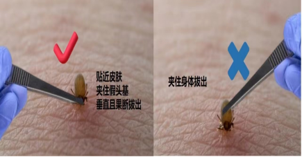 一旦发现有蜱虫叮咬,可用酒精或风油精涂在蜱身上,使蜱头部放松或死亡,再用尖头镊子紧紧夹住蜱头部或靠近头部的地方,然后缓慢用力取出蜱,切不可生拉硬拽,以免将蜱虫头部留在皮肤内,如无把握,应前往正规医疗机构处理。