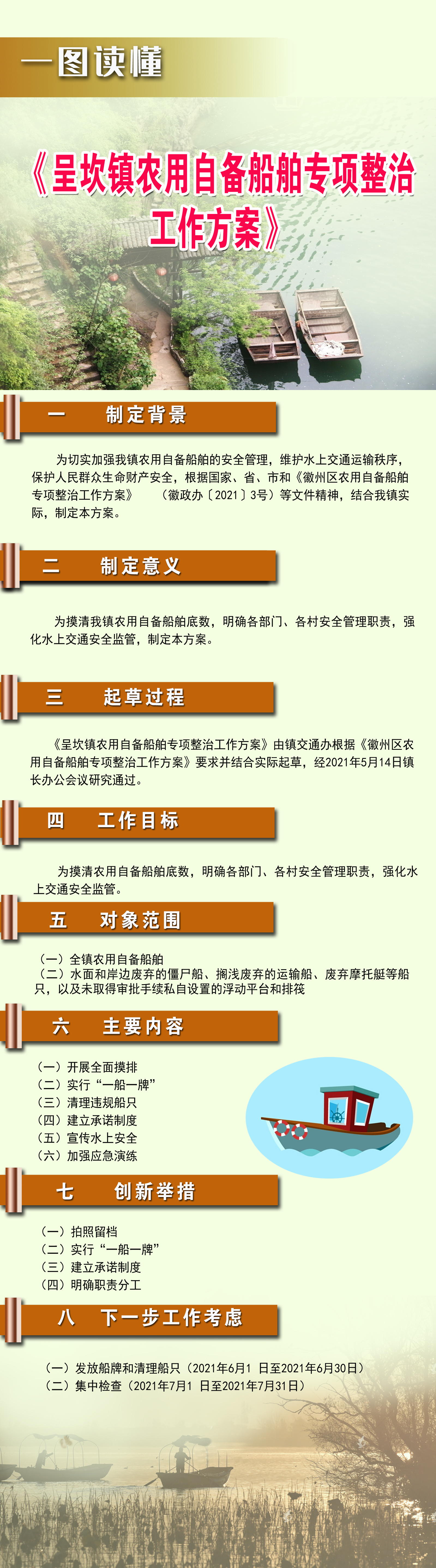 图表解读:《呈坎镇农用自备船舶专项整治工作方案》