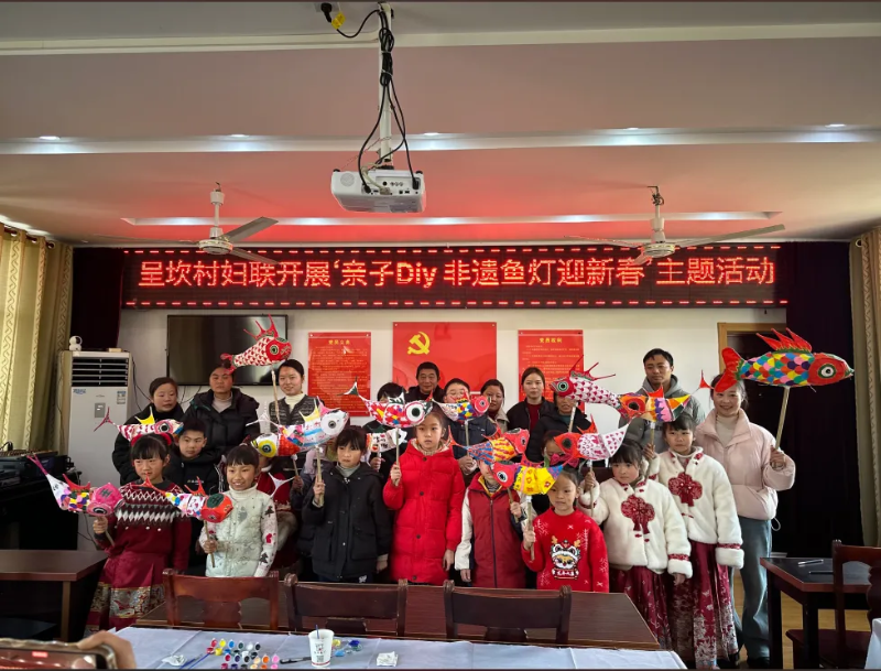 近日,呈坎镇呈坎村妇联组织开展“亲子DIY 非遗鱼灯迎新春”主题活动,邀请歙县非遗鱼灯传承人到场,介绍鱼灯的历史渊源、制作工艺及文化内涵,现场妇女儿童用彩纸制作鱼鳞,用彩笔描绘鱼身,通过亲身体验了解非遗文化的独特魅力。