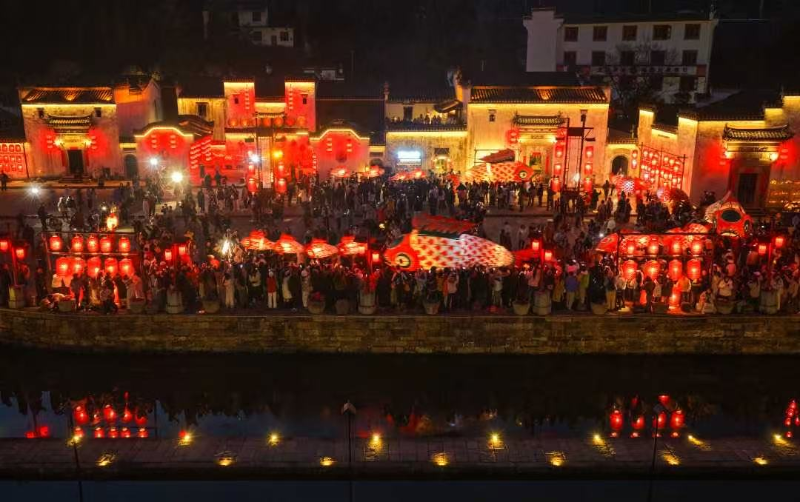 呈坎镇:非遗鱼灯点亮古村 游客与“鱼”共舞迎新年