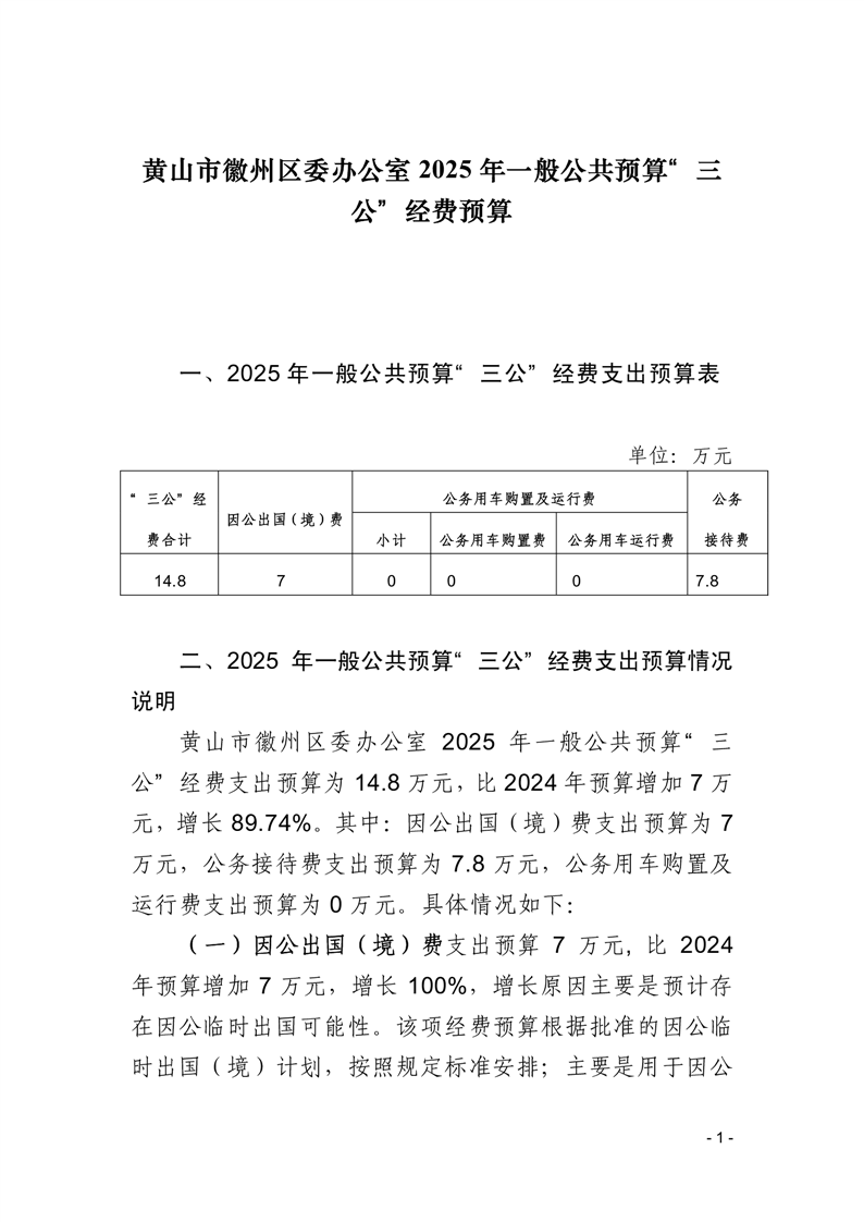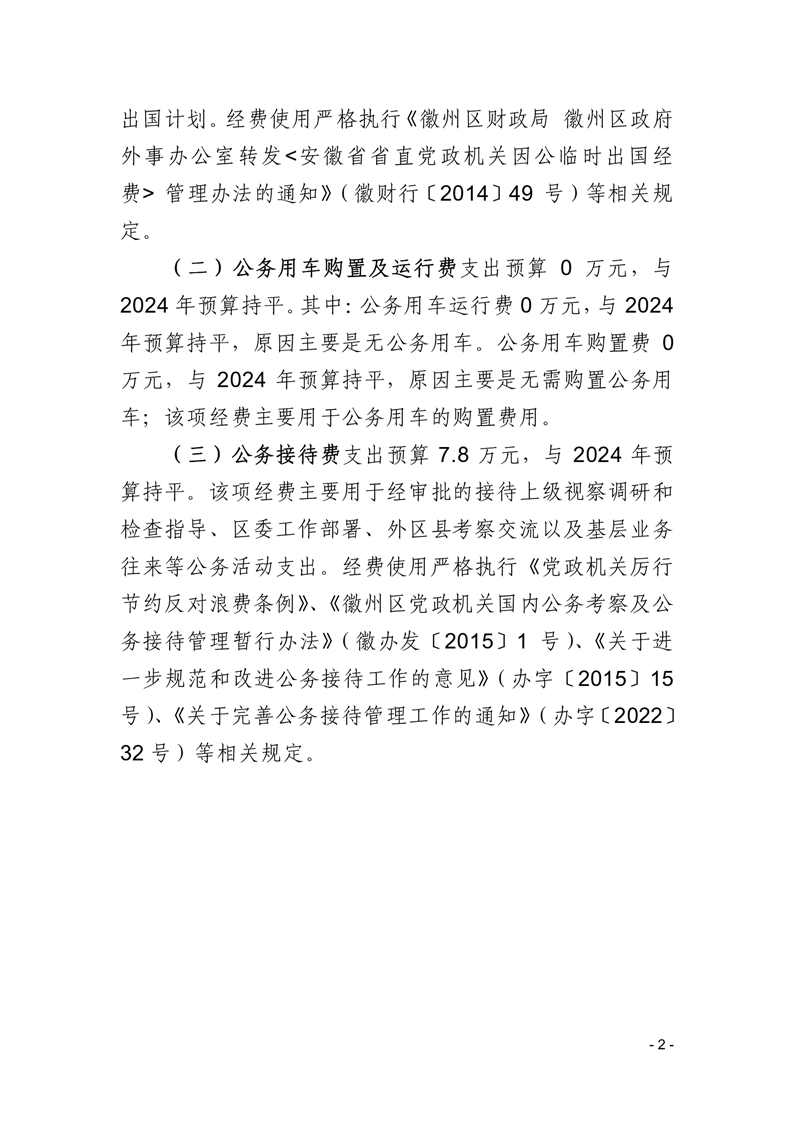 黄山市徽州区委办2025年一般公共预算“三公”经费预算