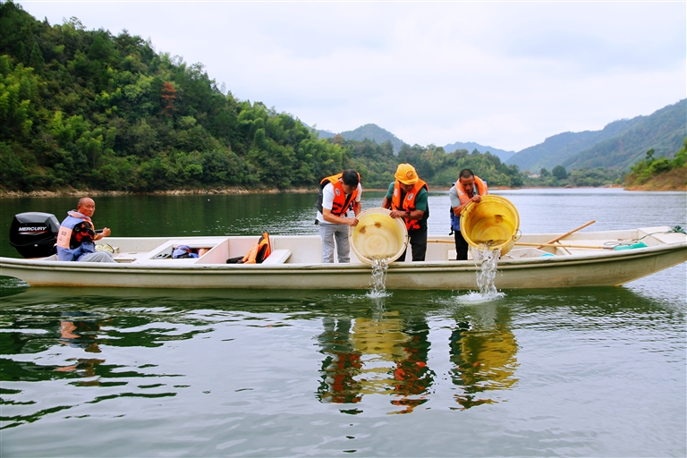 10月16日,徽州区2025年渔业增殖放流活动在容溪码头举行。30万尾经检疫的白鲢、鳙鱼被投入丰乐水库。
