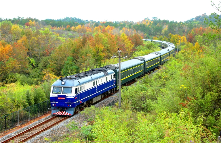 11月9日,“羽栖古木·镜揽徽光”黄山市古树飞鸟网红打卡点摄影暨短视频大赛采风活动第二站走进徽州区岩寺镇小岩村。在当地采风点,一辆绿皮火车疾驰在山林间,构成了一幅绝美的“徽州秋色图”。