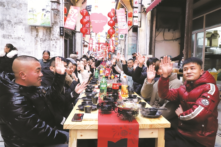2月7日,“宝藏家乡味·黄山岩寺老街长桌宴(百锅宴)暨徽州满池娇灯会”活动在徽州区岩寺老街启幕。活动以美食为媒、以文化为魂,为市民游客献上一场集民俗体验、非遗展演、光影夜游、新春祈福于一体的沉浸式文旅大餐。