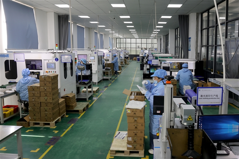 2月23日,春节假期接近尾声,徽州区城北工业园的众多企业陆续开工复产,力争马年“开门红”。图为黄山谷捷股份有限公司的员工正在赶制各类订单产品,供应市场。