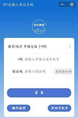 本案主要采用线上登记方式进行核实,通过微信小程序(程序名称:831受损人登记系统)进行信息登记。