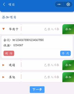 5. 全部合同信息添加完成并核对无误后,点击“下一步”。