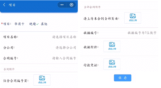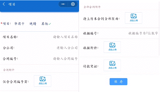 4. 添加合同信息:点击项目分类下方的“添加”,可继续添加对应的合同信息,合同信息填写完成后点击“保存”按钮。“添加”按钮支持多次点击以添加多条合同信息。